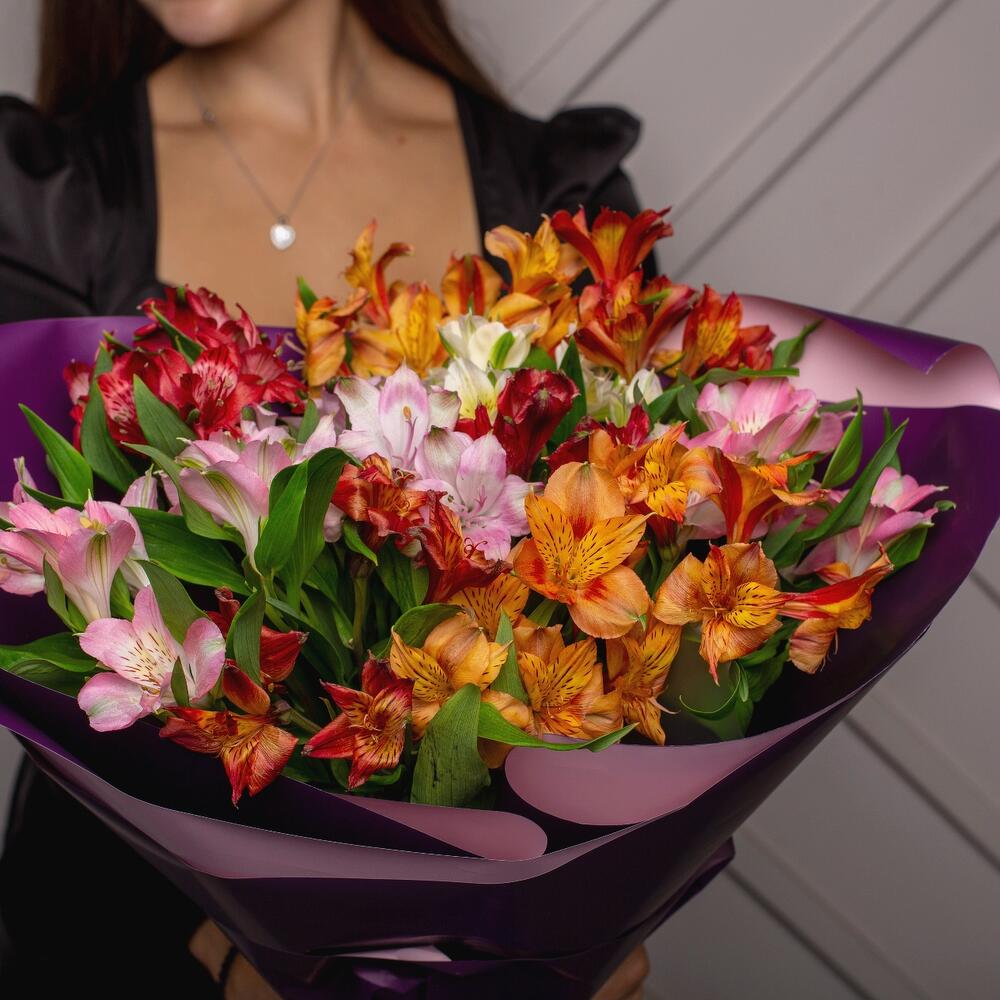 Этот яркий букет из альстромерий станет настоящим праздником для вашей любимой девушки, жены. Каждая цветочная головка излучает радость и тепло, наполняя пространство яркими красками и позитивной энергией. Альстромерии, символизирующие дружбу и преданность, создают атмосферу счастья и уюта. Подарите этот красочный букет, и он станет прекрасным напоминанием о вашей любви и заботе!