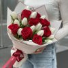 Букет Идиллия из красных роз и белых тюльпанов в Сысерти